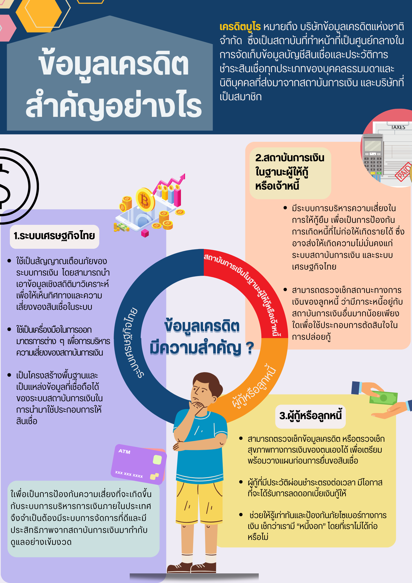 - K, S. (2023, February 13). ความสำคัญของเครดิตบูโร มาทำความรู้จักกันให้มากขึ้น ในโพสต์เดียว. บริษัทข้อมูลเครดิตแห่งชาติ - National Credit Bureau. https://www.ncb.co.th/ncb-infographic/credit-bureau-importance-economy-2/